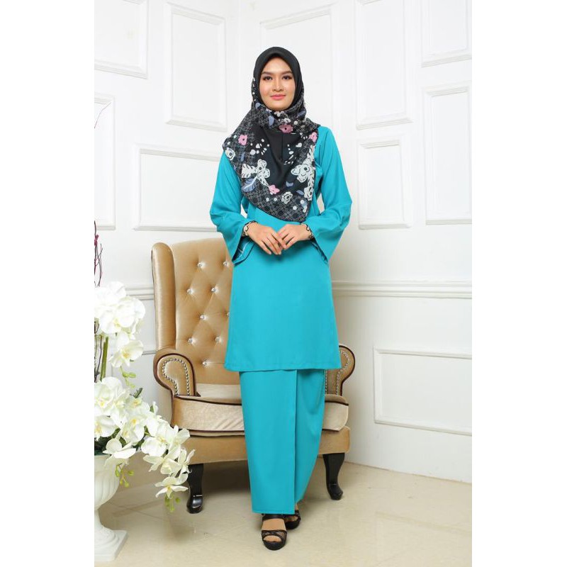Baju Kurung Pahang Plain High Quality Less Iron Biru Blue Turquoise Shopee Malaysia